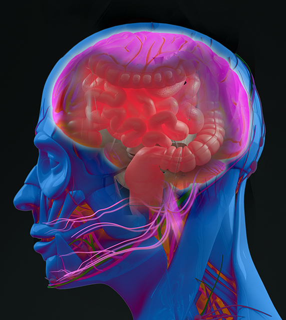 Da das zentrale Nervensystem und das Darmnervensystem über Botenstoffe in engem Austausch stehen, mutmaßen Experten, dass das Darmnervensystem, bei Reizdarmpatienten überaktiv ist. Das überaktive Bauchhirn beeinflusst vermutlich die Psyche, umgekehrt wirkt sich die Stimmung auch auf den Magen-Darm-Trakt aus.
